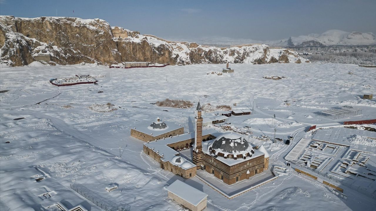 Kar nedeniyle Van Kalesi ve zirvesindeki Süleyman Han Camisi ile Eski Van Şehri'ndeki tarihi cami ve yapılar karla kaplandı.
