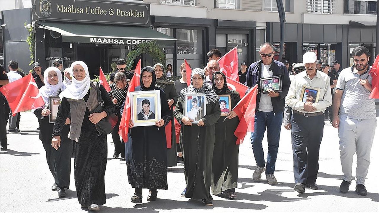 VAN (AA) - Menekşe Sokak'ta bir araya gelen aileler, Türk bayrakları ve evlatlarının fotoğraflarını taşıyarak, DEM Parti İl Başkanlığı binasının önüne kadar yürüdü.