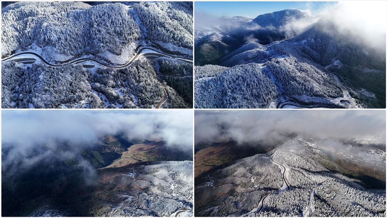 KASTAMONU (AA) - Abana, Bozkurt ve Çatalzeytin ilçelerini il merkezine bağlayan kara yolu güzergahında yer alan Yaralıgöz Dağı'ndaki kar ve sis tabakası güzel görüntüler oluşturdu.
