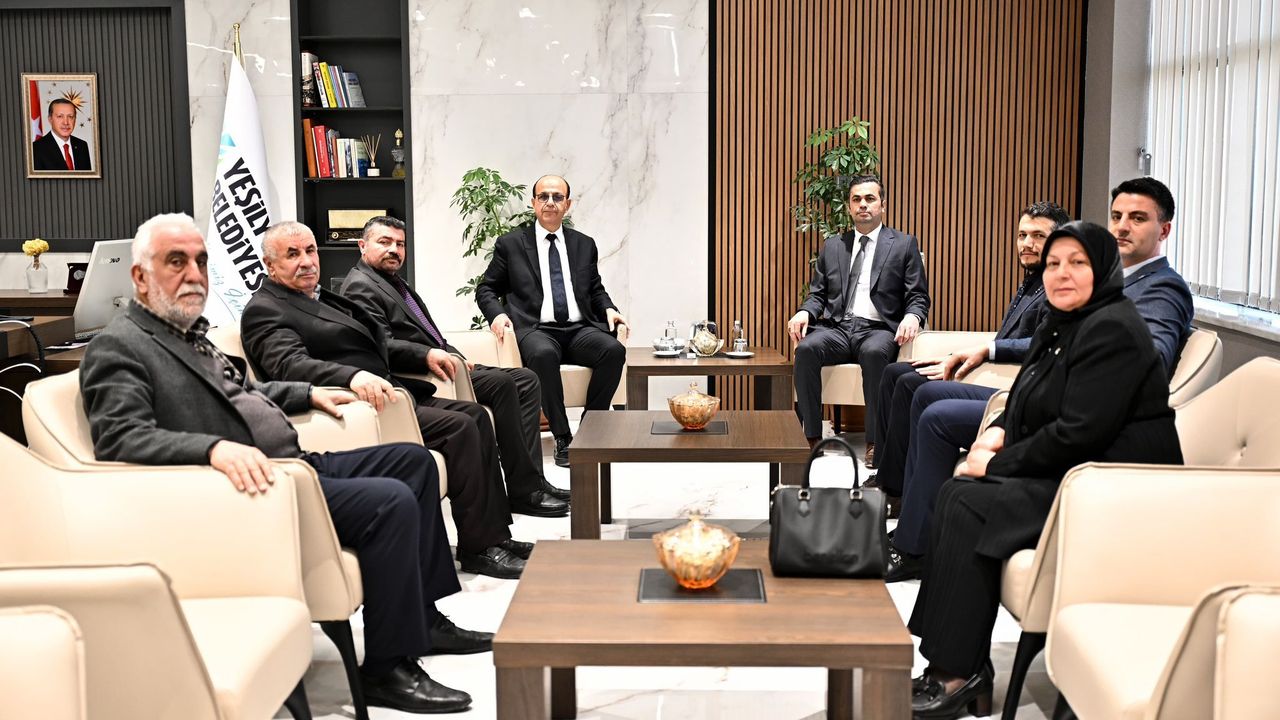 Emniyet Teşkilatı Vazife Malulü ve Şehit Aileleri Vakfı Başkanı Zeynal Selağzı, şehit aileleri ve gazilerle birlikte Yeşilyurt Belediye Başkanı İlhan Geçit'i ziyaret etti. Ziyarette karşılıklı görüş alışverişinde bulunulurken, Başkan Geçit şehit ailelerine tablo hediye etti.
