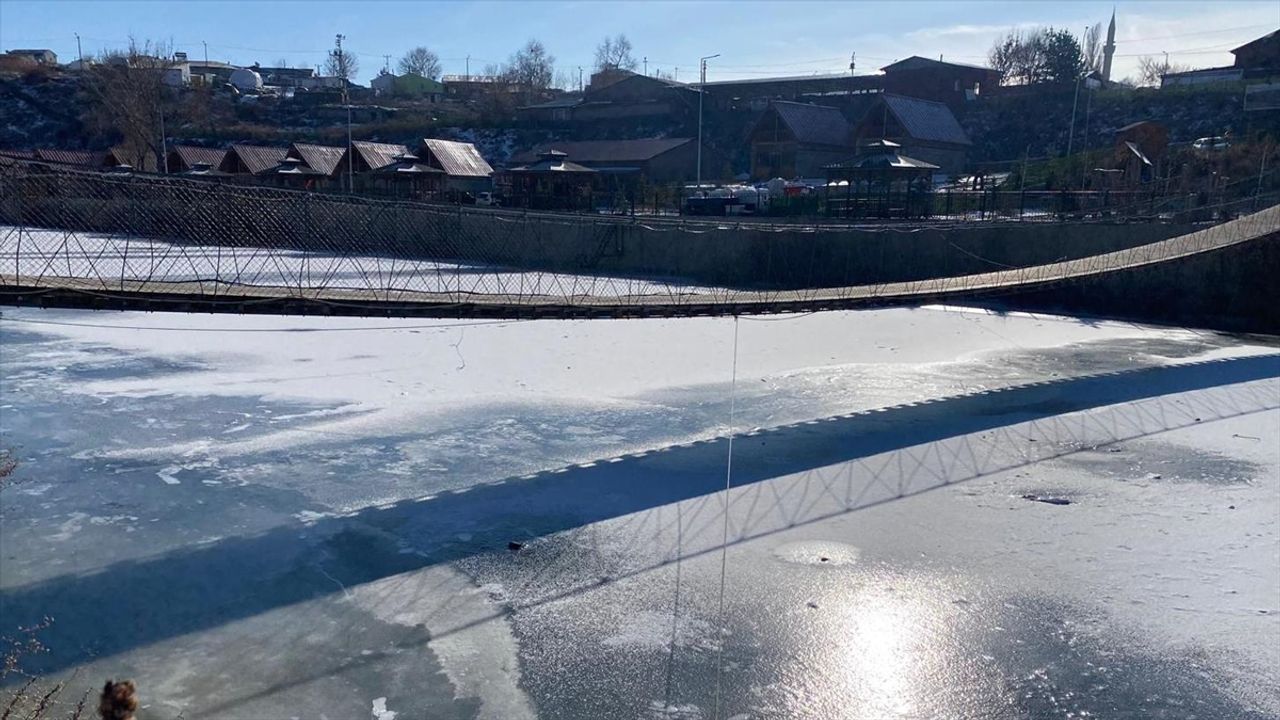 İl merkezindeki Kura Nehri ve Alabalık Deresi'nin yüzeyi buzla kaplandı.